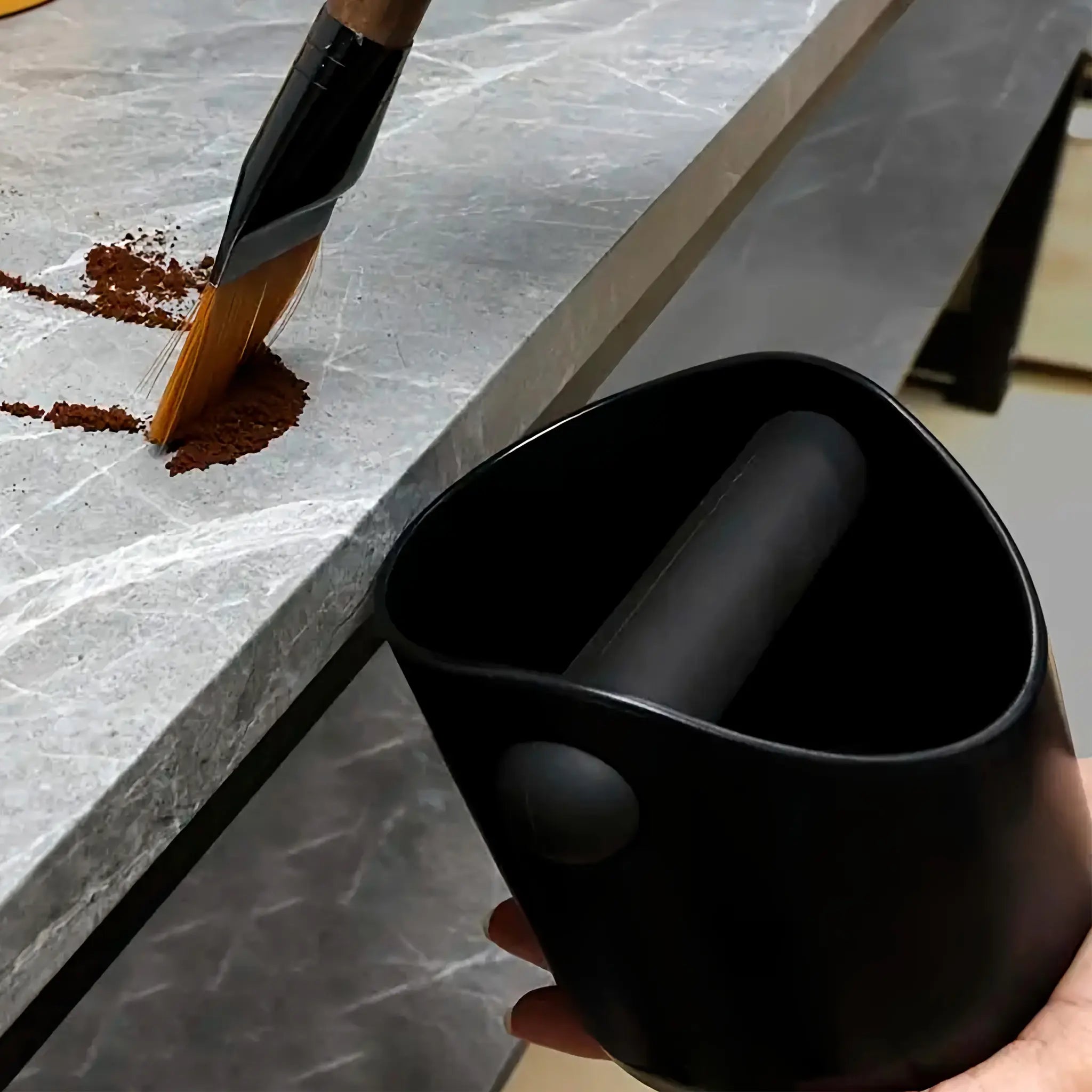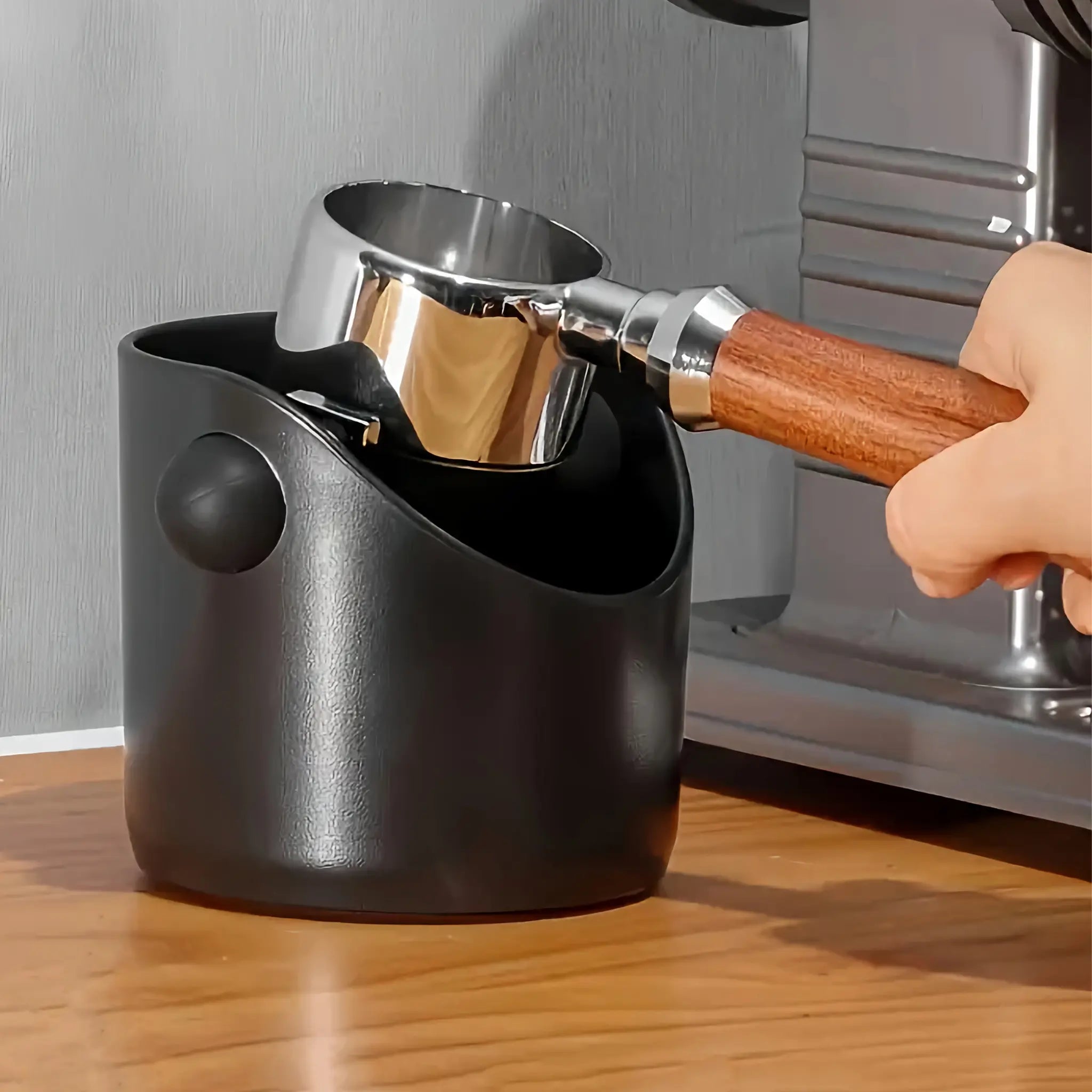 Mantén tu estación de café limpia y ordenada con este knock box. Su diseño compacto y resistente facilita desechar los posos de café de manera rápida y práctica, ideal tanto para uso en casa como en cafeterías.