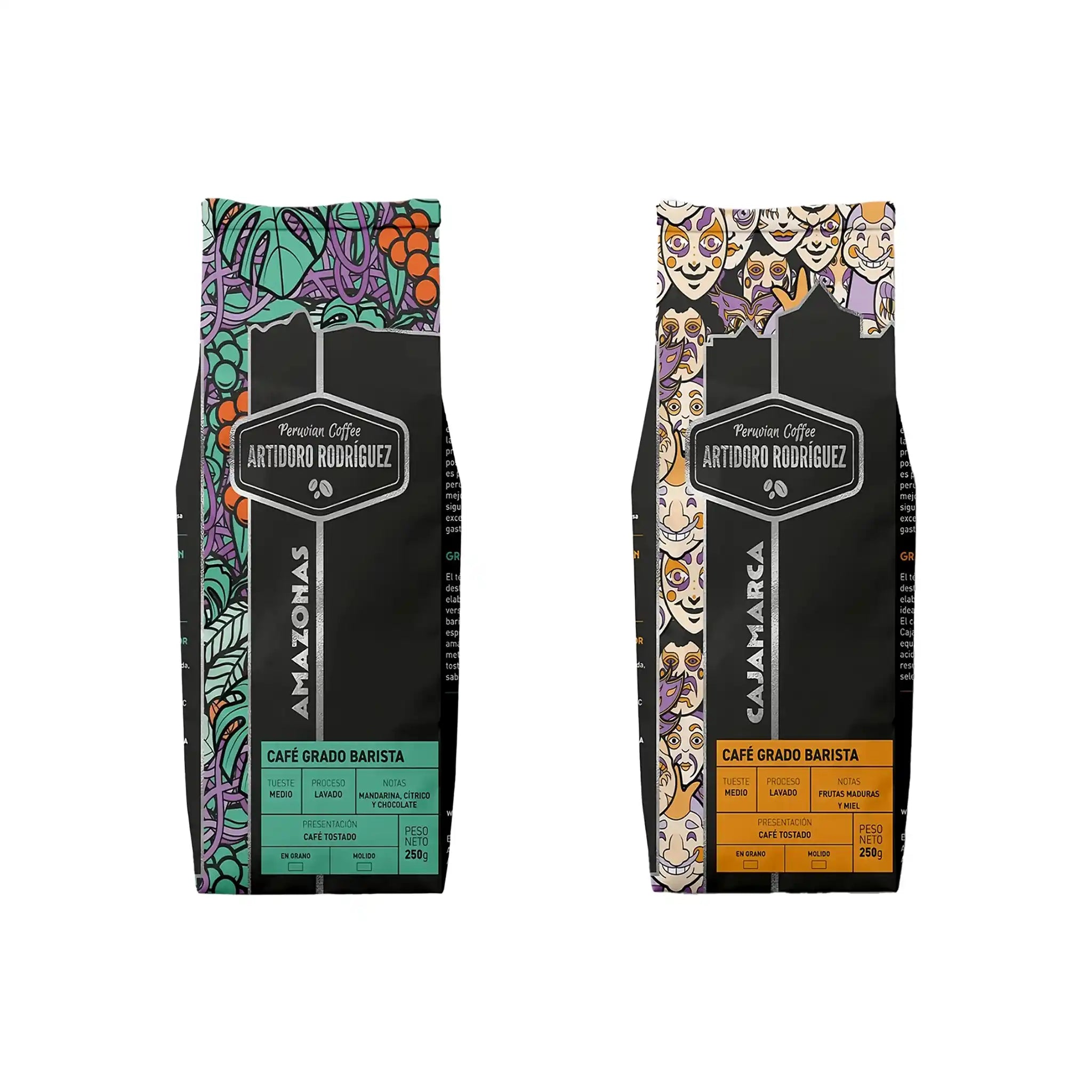Descubre este dúo de café de especialidad Artidoro Rodríguez Grado Barista de 250 g en grano entero, ideal para quienes buscan variedad. Incluye dos perfiles distintos:
