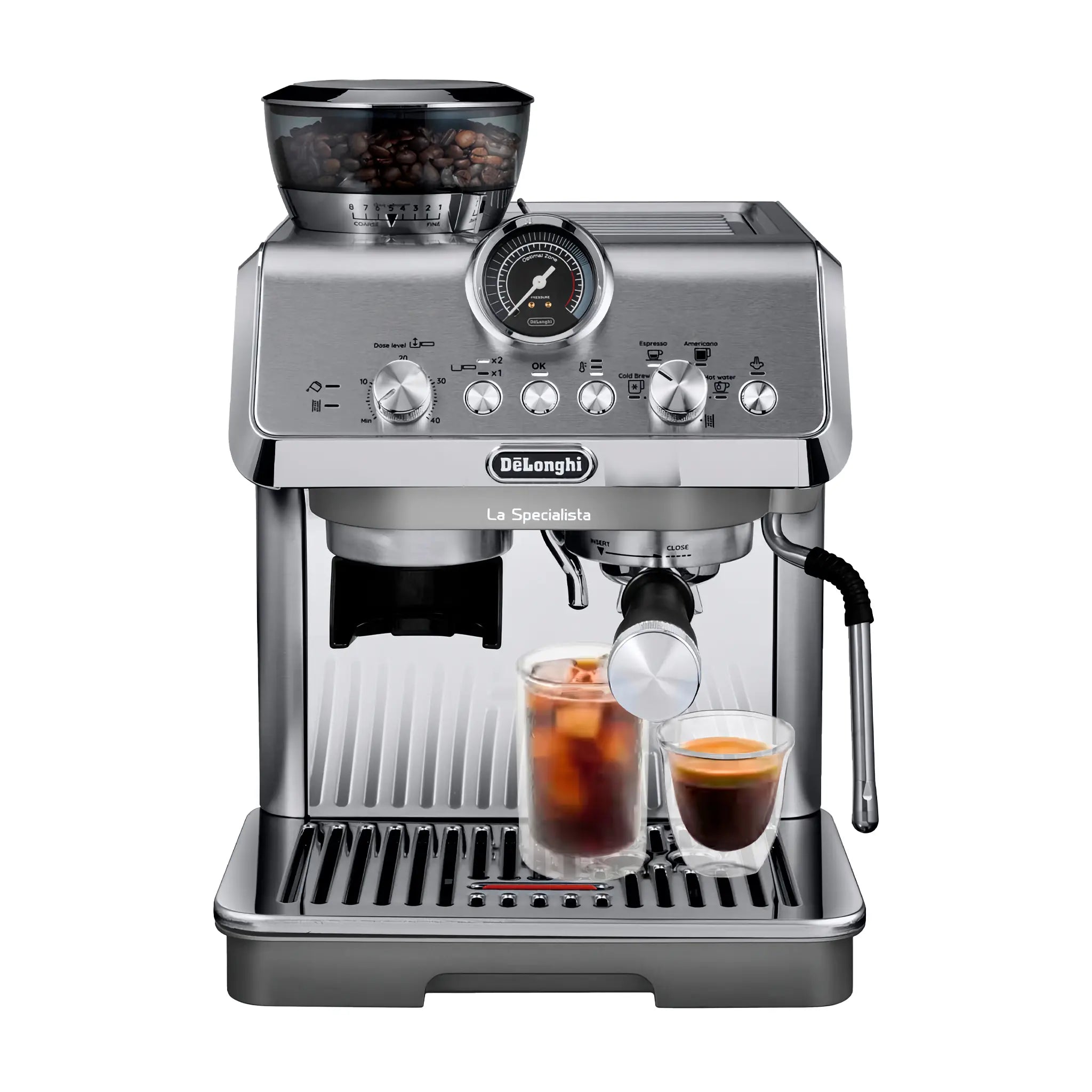 Cafetera espresso doméstica inspirada en el estilo barista que te ofrece control total sobre cada paso del proceso de preparación del café. Cuenta con tecnología avanzada que combina un molinillo integrado, control activo de temperatura y la innovadora tecnología Cold Extraction para disfrutar tanto de bebidas calientes como frías desde casa.