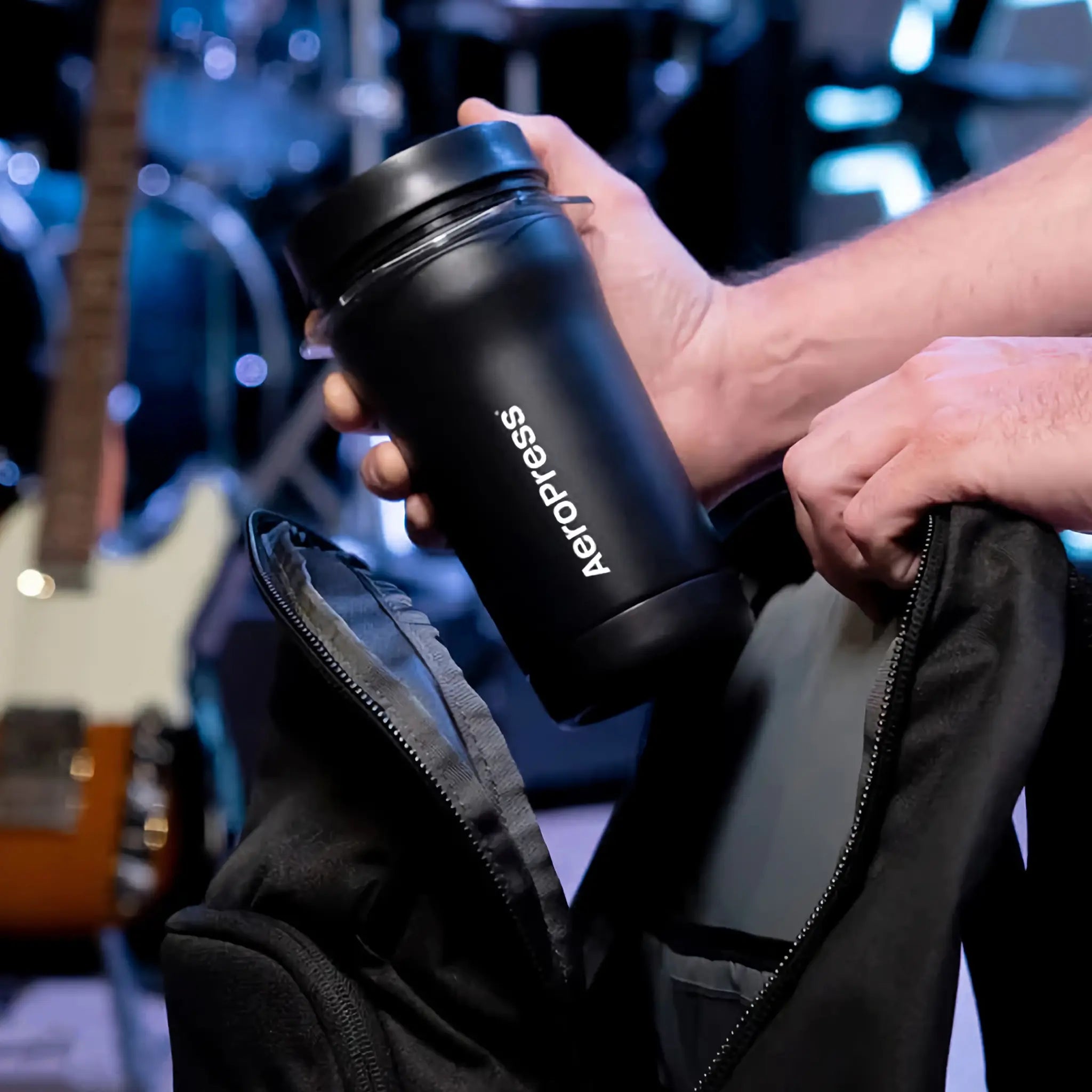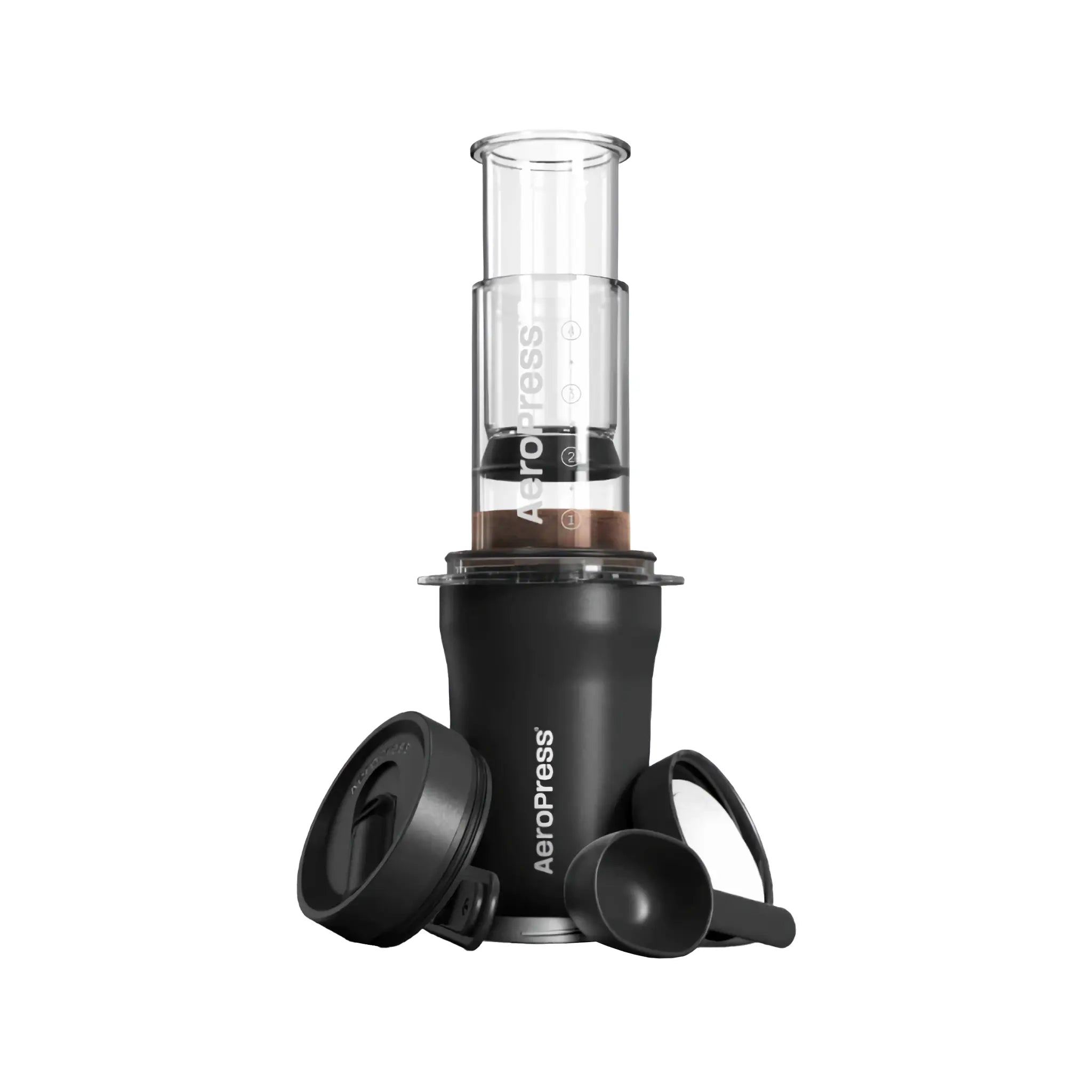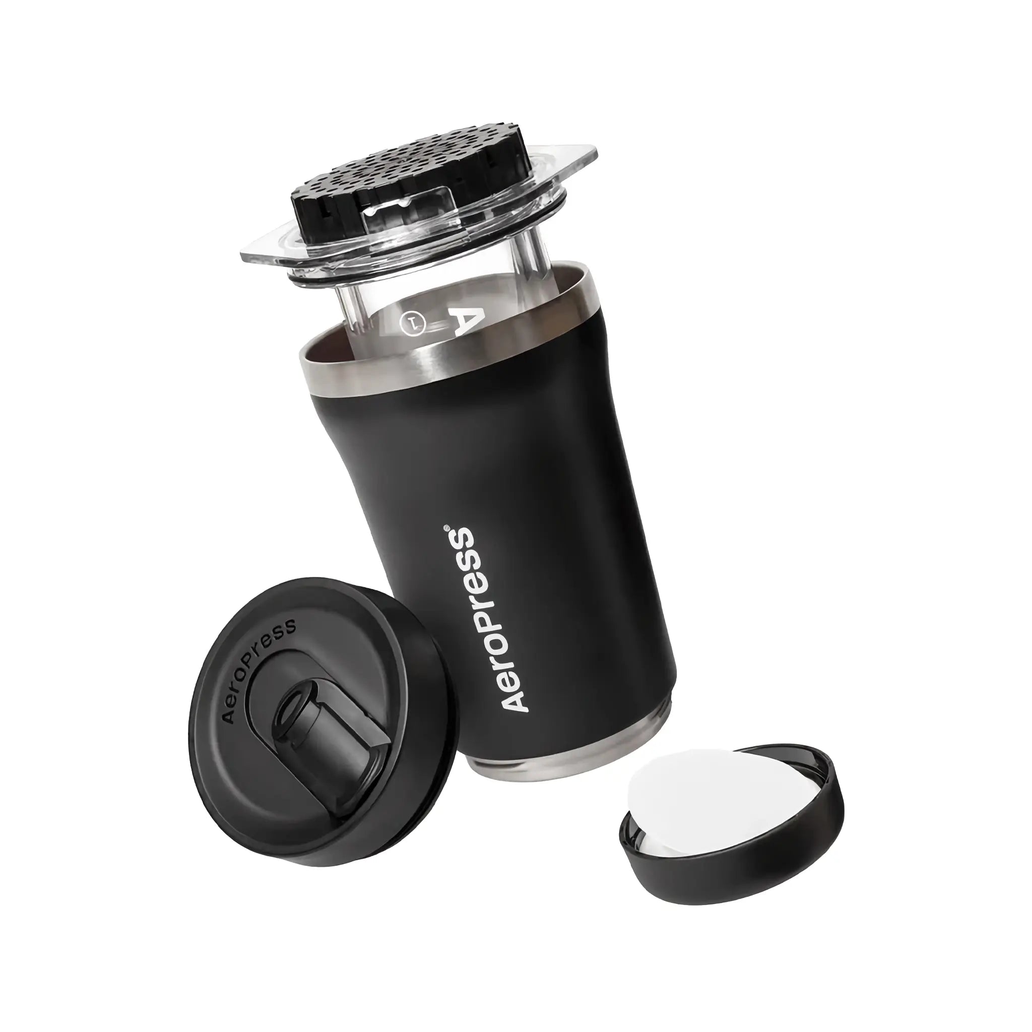 El AeroPress Go Plus es el sistema de café de viaje más completo de AeroPress, diseñado para ofrecer versatilidad y practicidad en cualquier lugar. Incluye un tumbler térmico de acero inoxidable de doble pared con tapa de rosca para transportar tu bebida, además de un compartimento porta-filtros integrado en la base para mayor comodidad. Con todos los accesorios esenciales, podrás preparar café estilo espresso, filtrado o de inmersión de forma rápida y sencilla. Ideal para viajes, oficina o aventuras al aire libre.