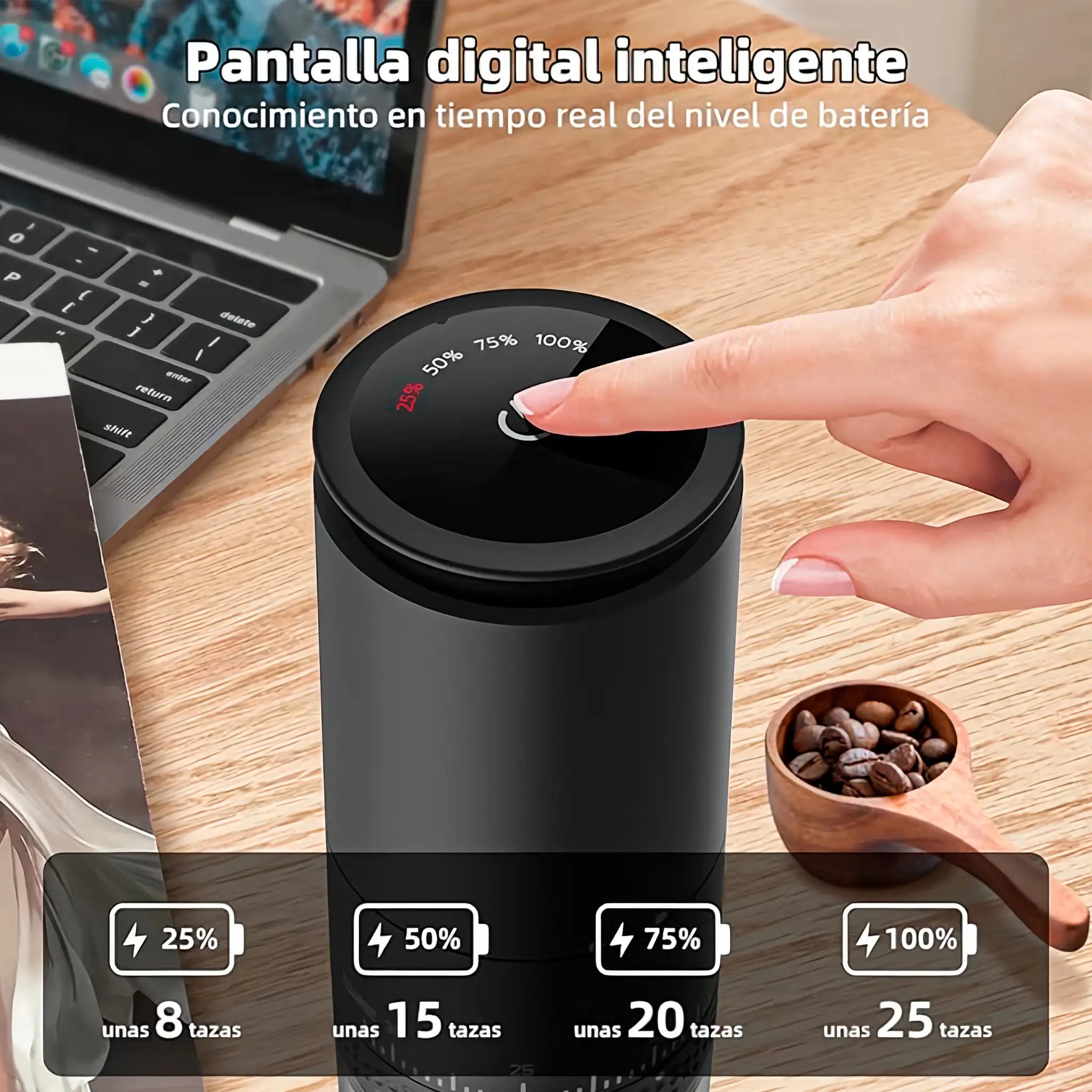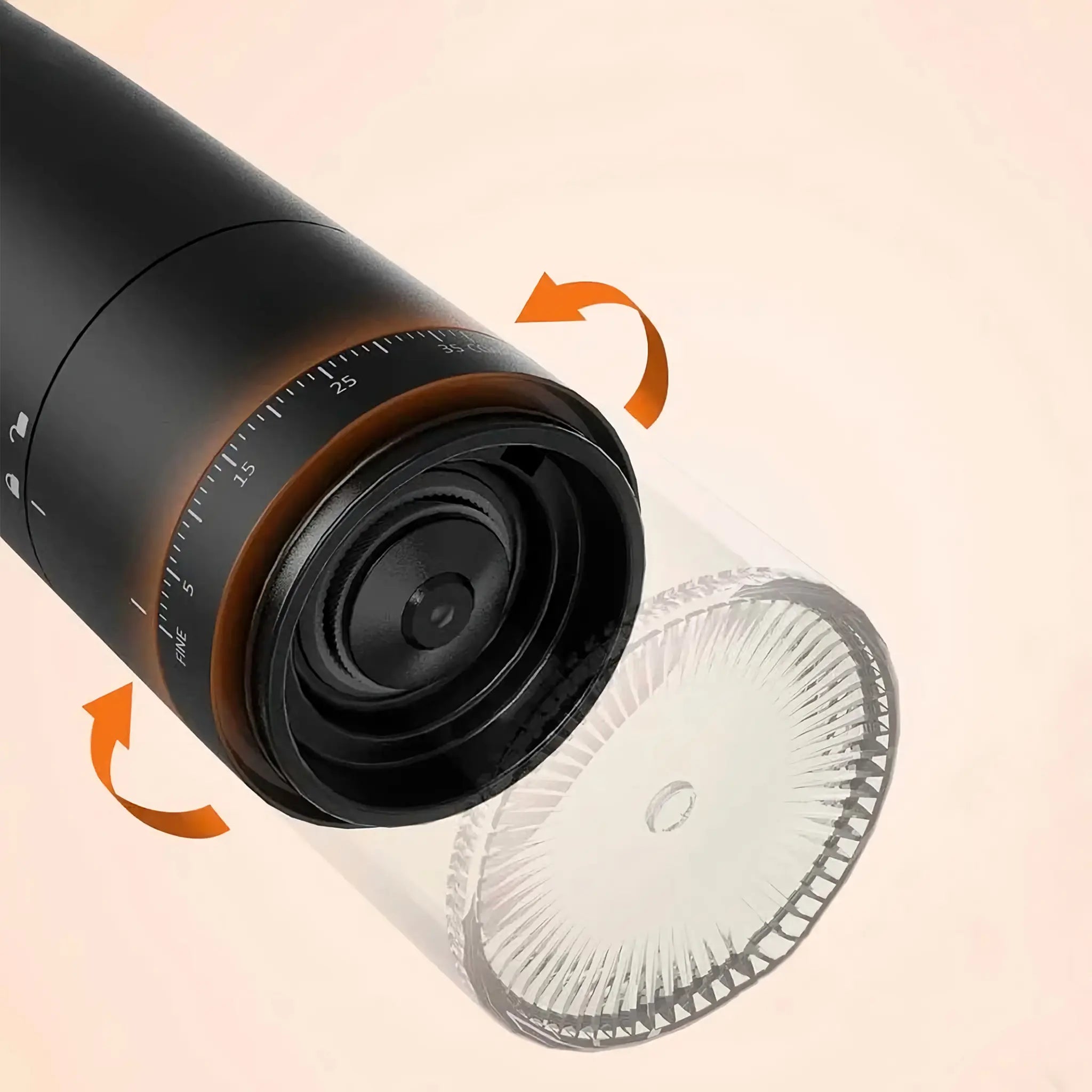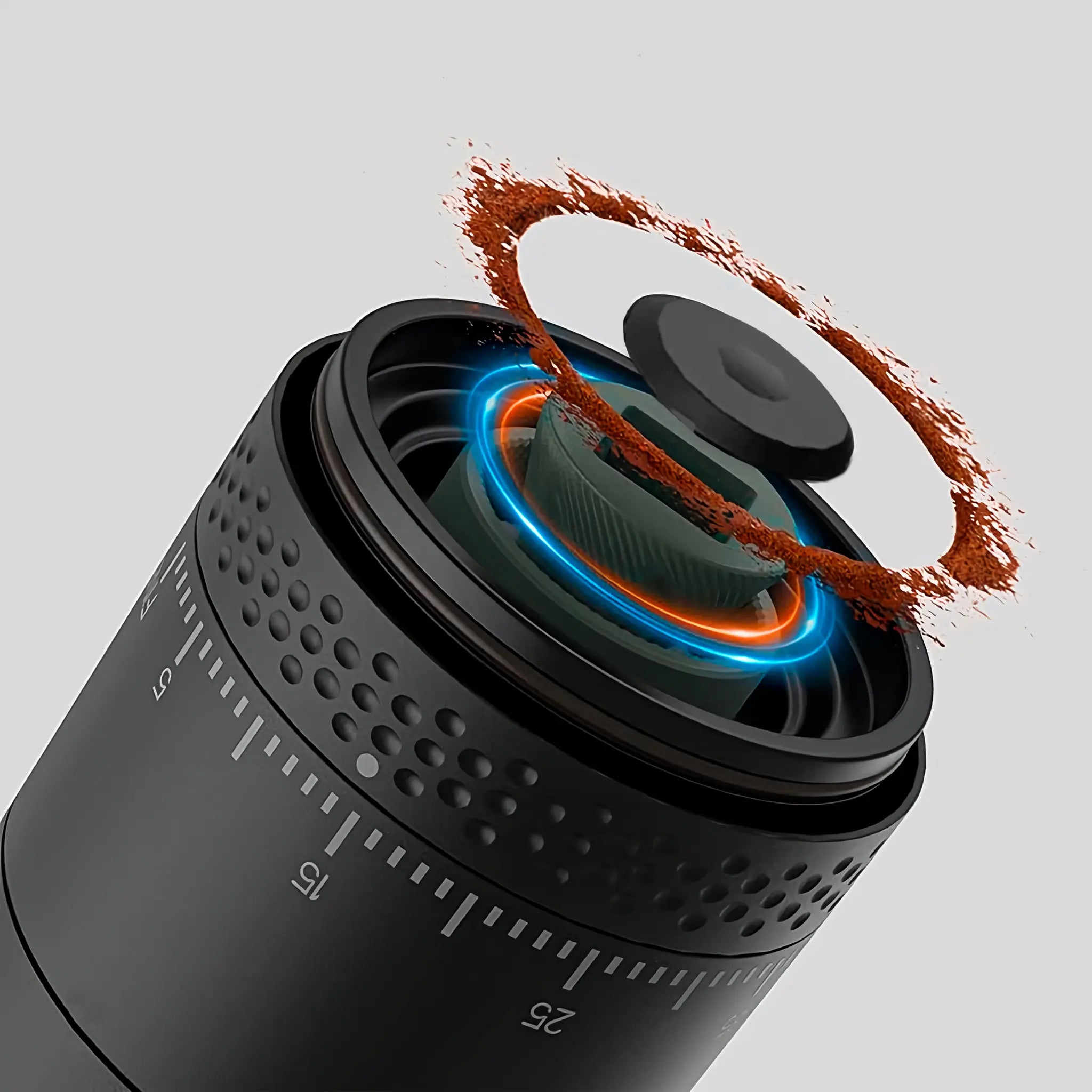 Este molino combina potencia, precisión y diseño portátil para ofrecer una molienda fresca en cualquier lugar. Gracias a sus múltiples ajustes de molienda y su sistema de muelas cónicas ajustables, garantiza una textura uniforme del café, adaptándose a todos los métodos de preparación: desde un molido fino para moka, pasando por métodos de goteo y prensa francesa, hasta el molido grueso ideal para cold brew. Perfecto para el uso diario en casa, oficina o viajes.