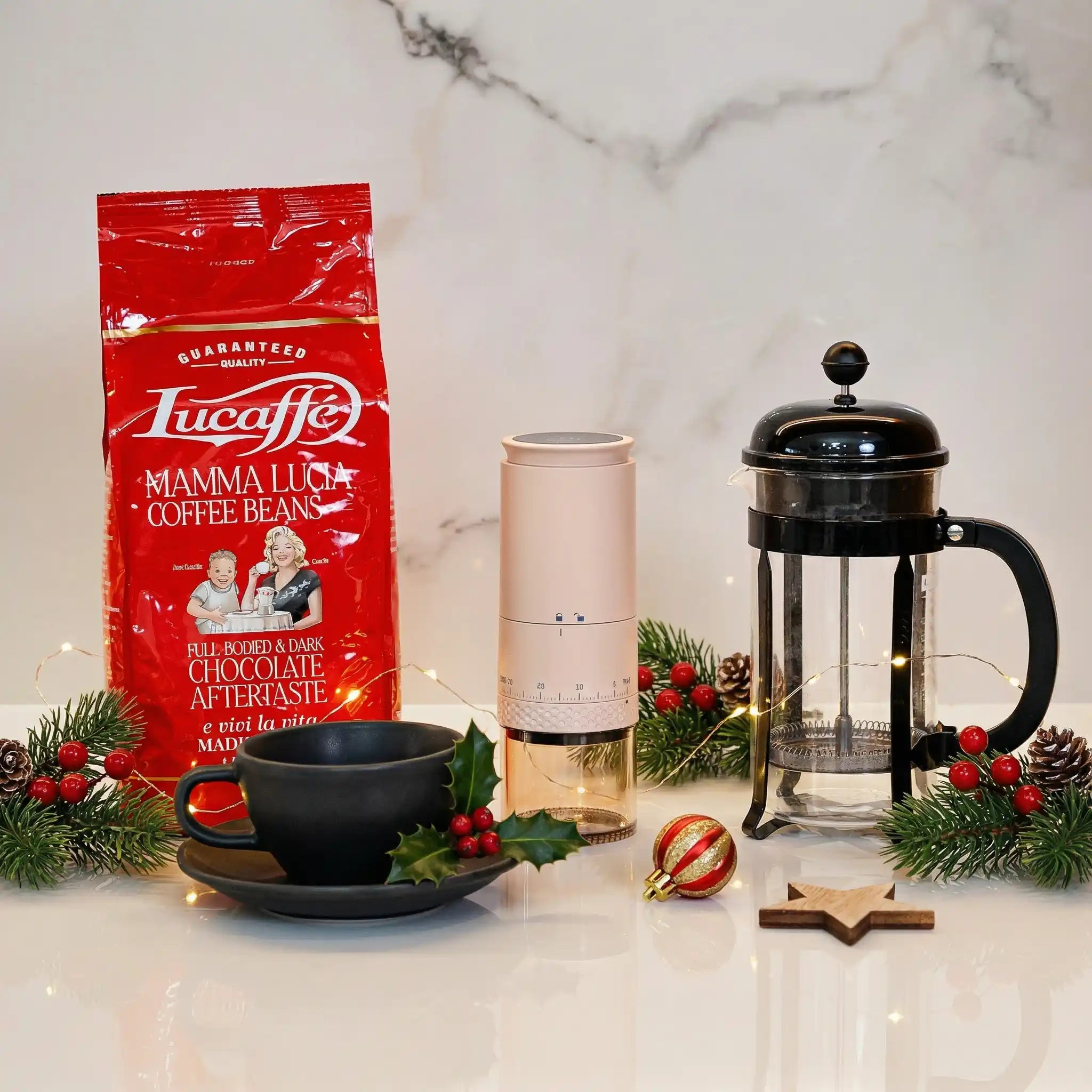 Compacto, recargable y diseñado para moler café al instante, conservando toda su frescura. - Café en grano Lucaffé 1 kg (elige entre Mamma Lucia o Vending Premium)