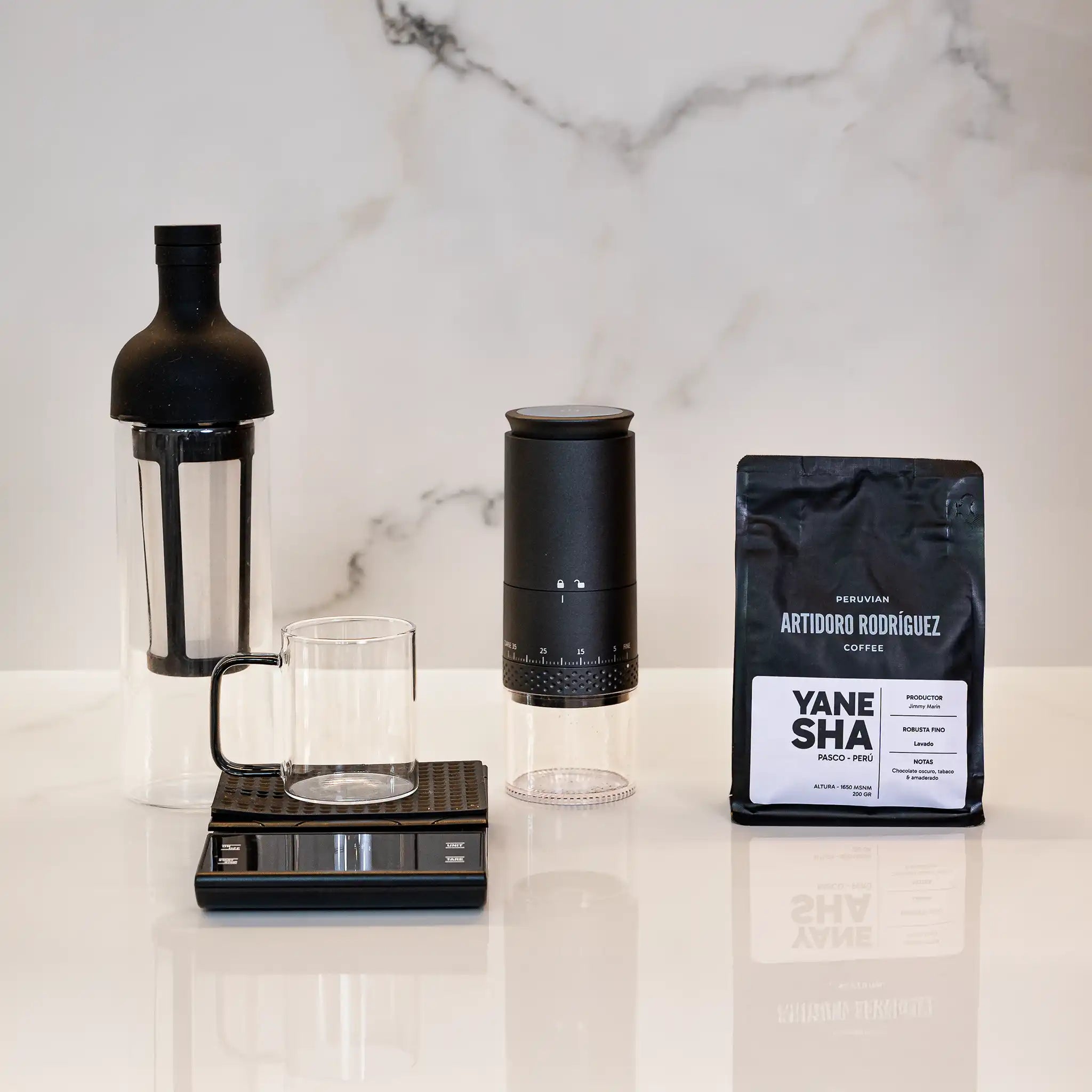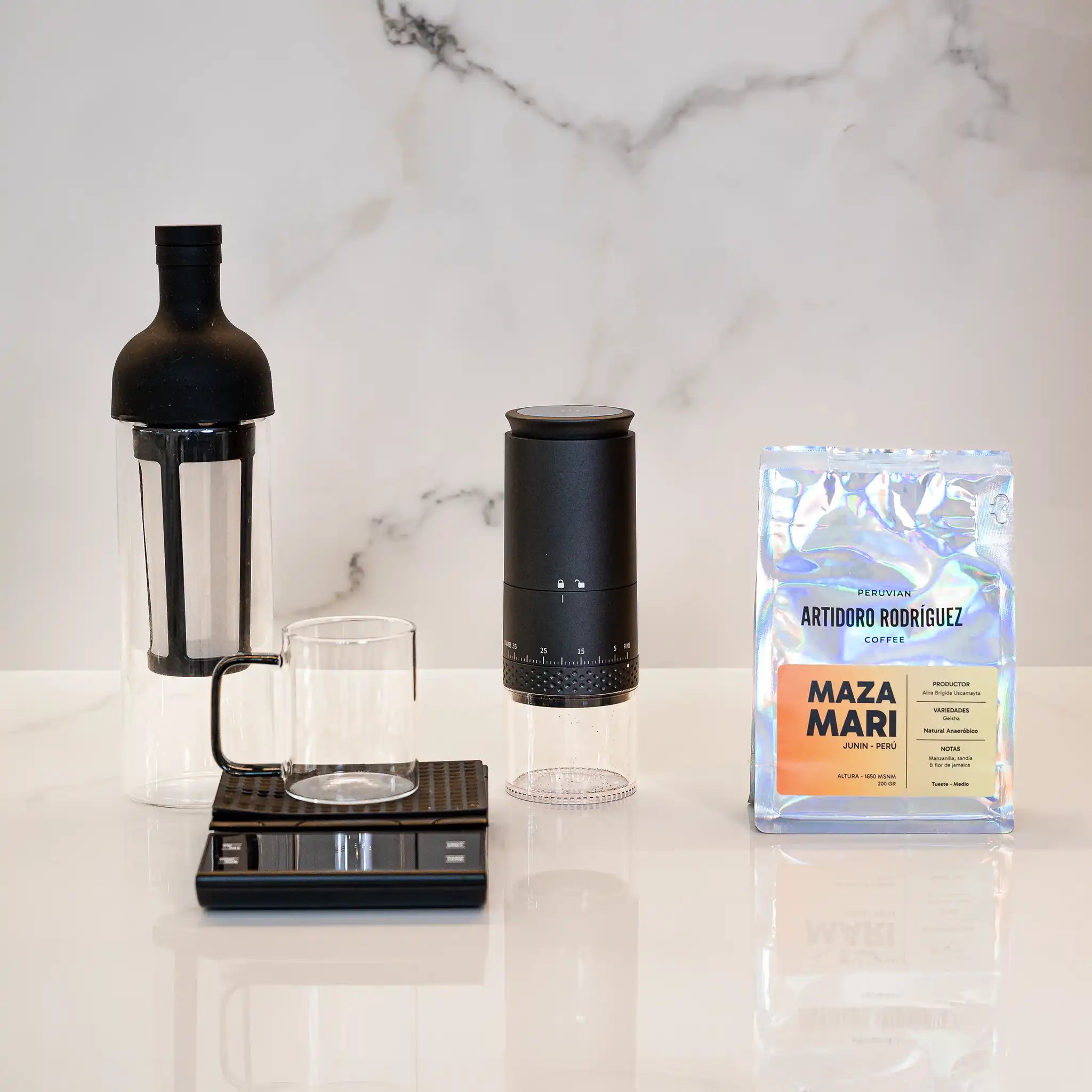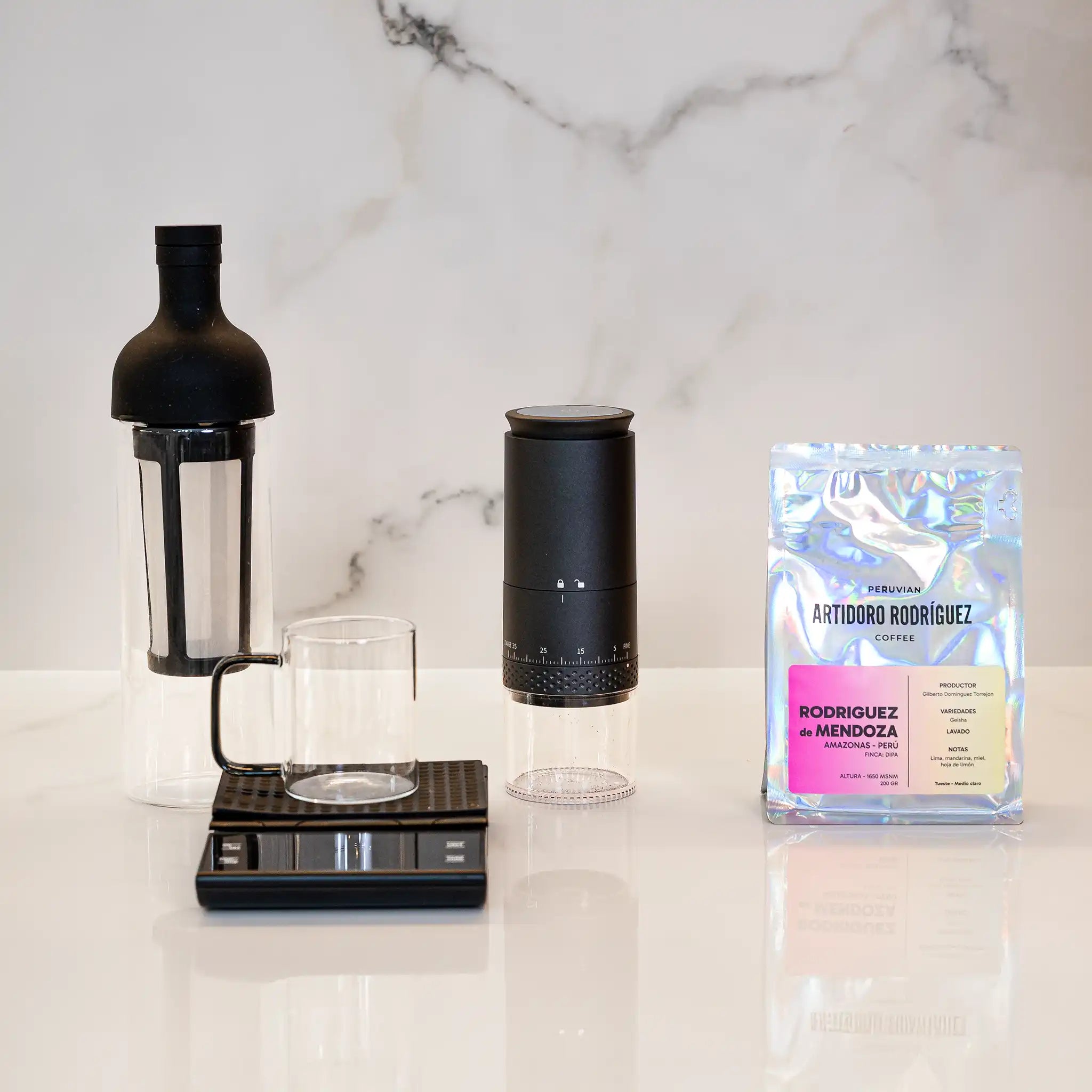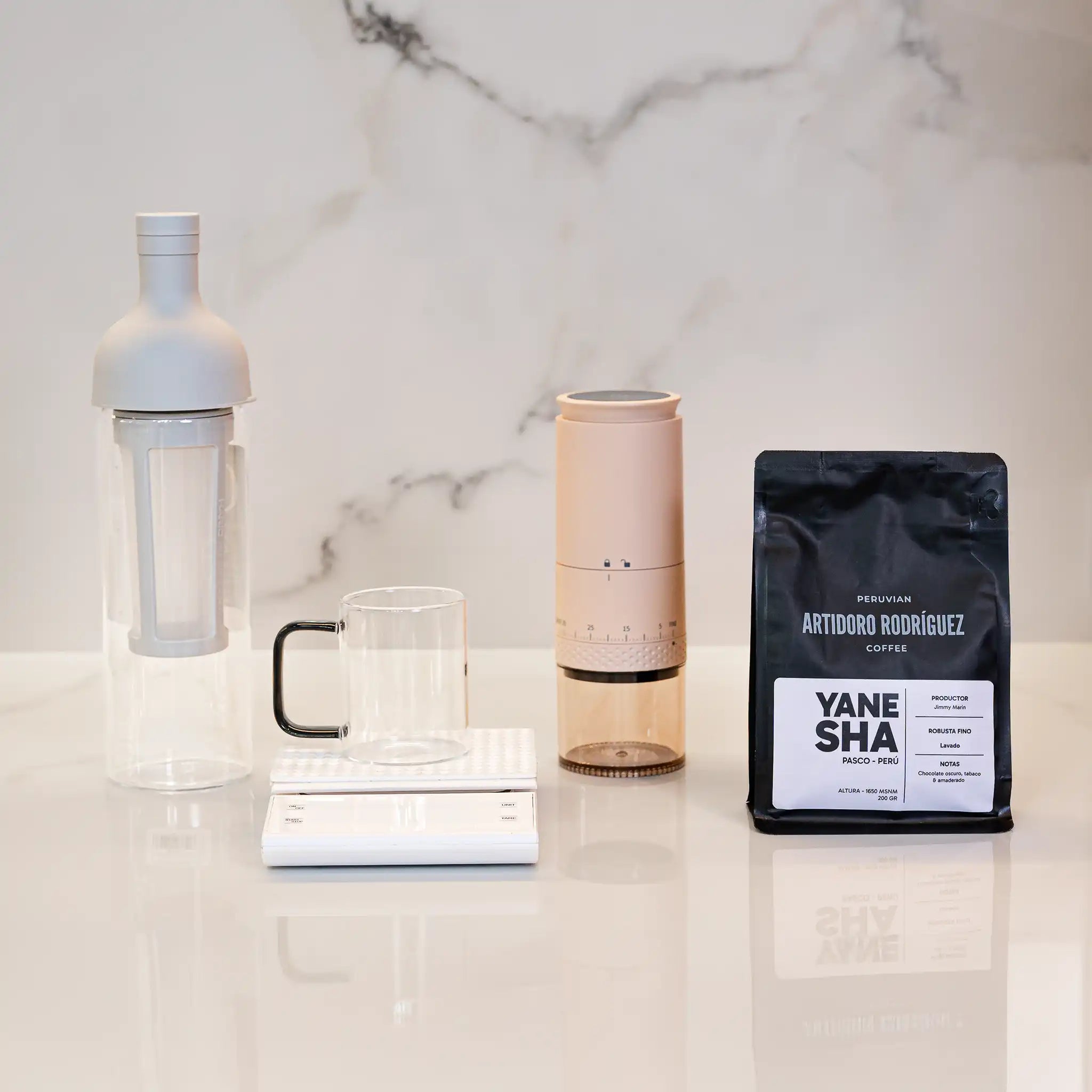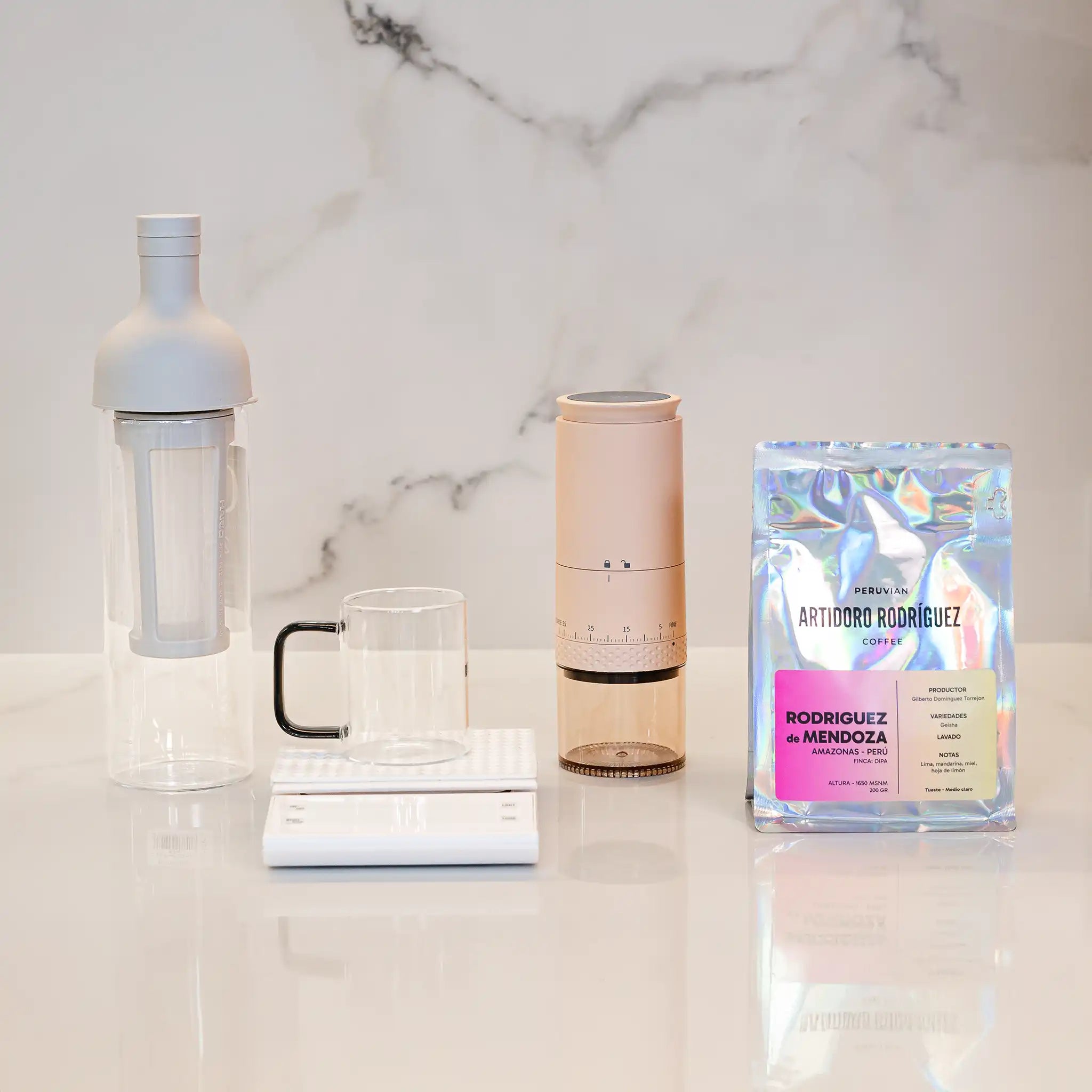 Prepara café frío en casa con un resultado suave, refrescante y lleno de sabor con este kit personalizable para método Cold Brew. Un set elegante, práctico y funcional: el regalo perfecto para amantes del café, ideal para sorprender y disfrutar en casa u oficina.