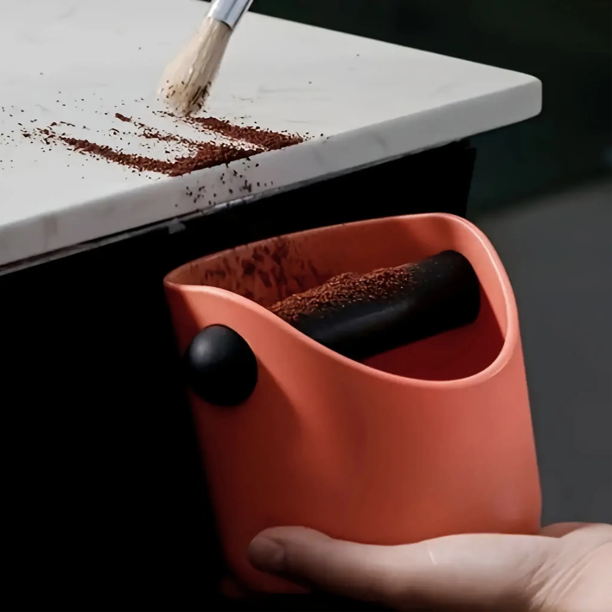 Mantén tu estación de café limpia y ordenada con este knock box. Su diseño compacto y resistente facilita desechar los posos de café de manera rápida y práctica, ideal tanto para uso en casa como en cafeterías.